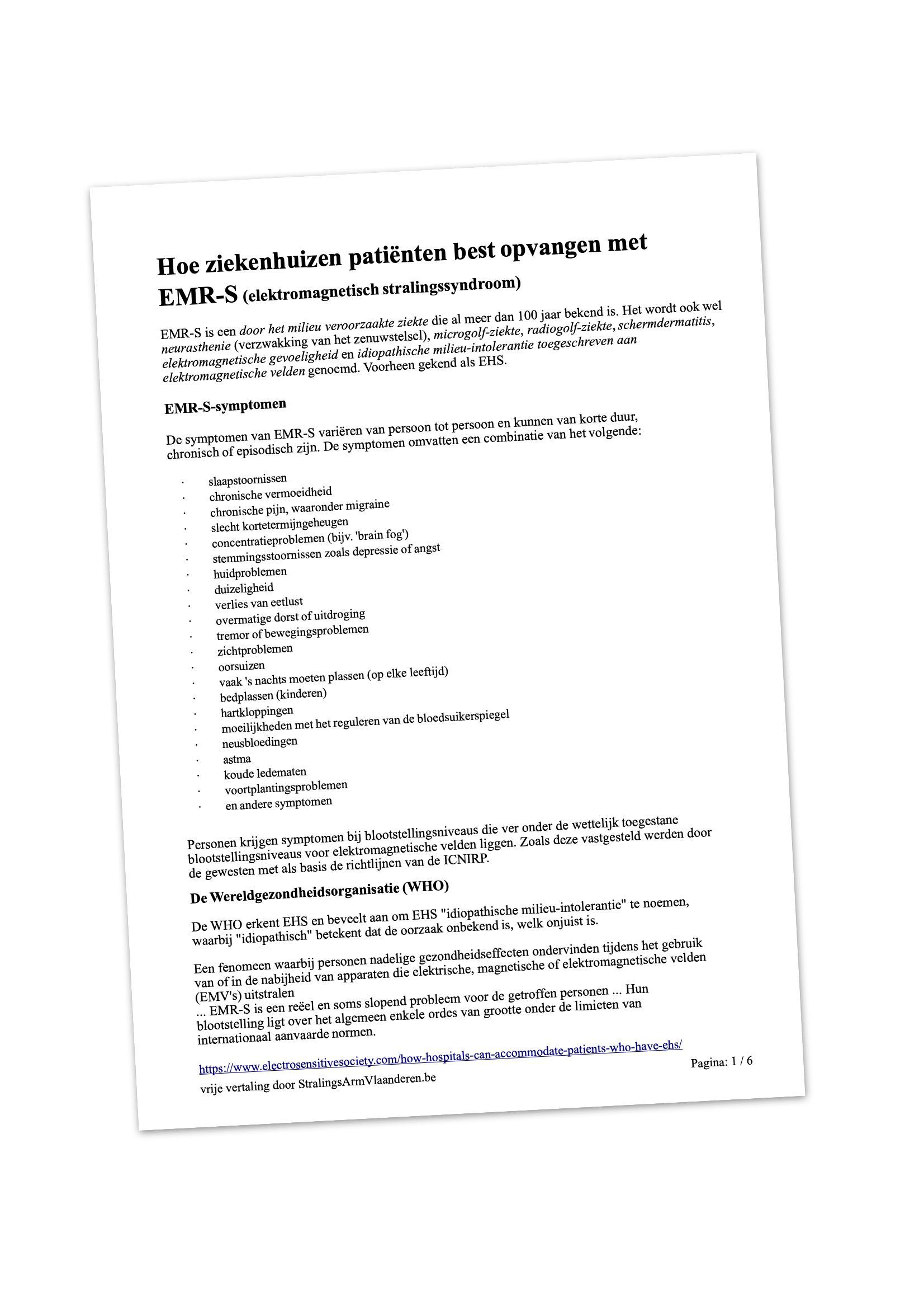 De verklaring van ruim 3.500 artsen weerspiegelt de consensus van de meest recente, onafhankelijke, wereldwijde fora van deskundigen over de acute en chronische gezondheidseffecten van radiofrequente straling (RFS).
